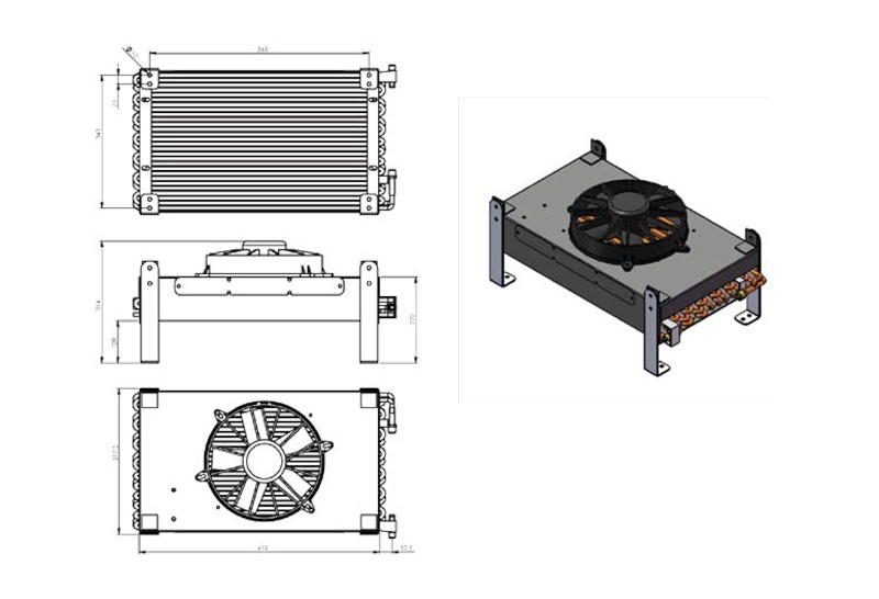 DIMENSÕES – ver desenho CAPACIDADE MÁXIMA (BTU/hr) – 40000 MODELO DE SERPENTINA – Tubo/aleta VOLTAGEM (volt)– 12/24 CONSUMO DE CORRENTE (Amp) – 16 FLUXO DE AR (m³/h) – 2400